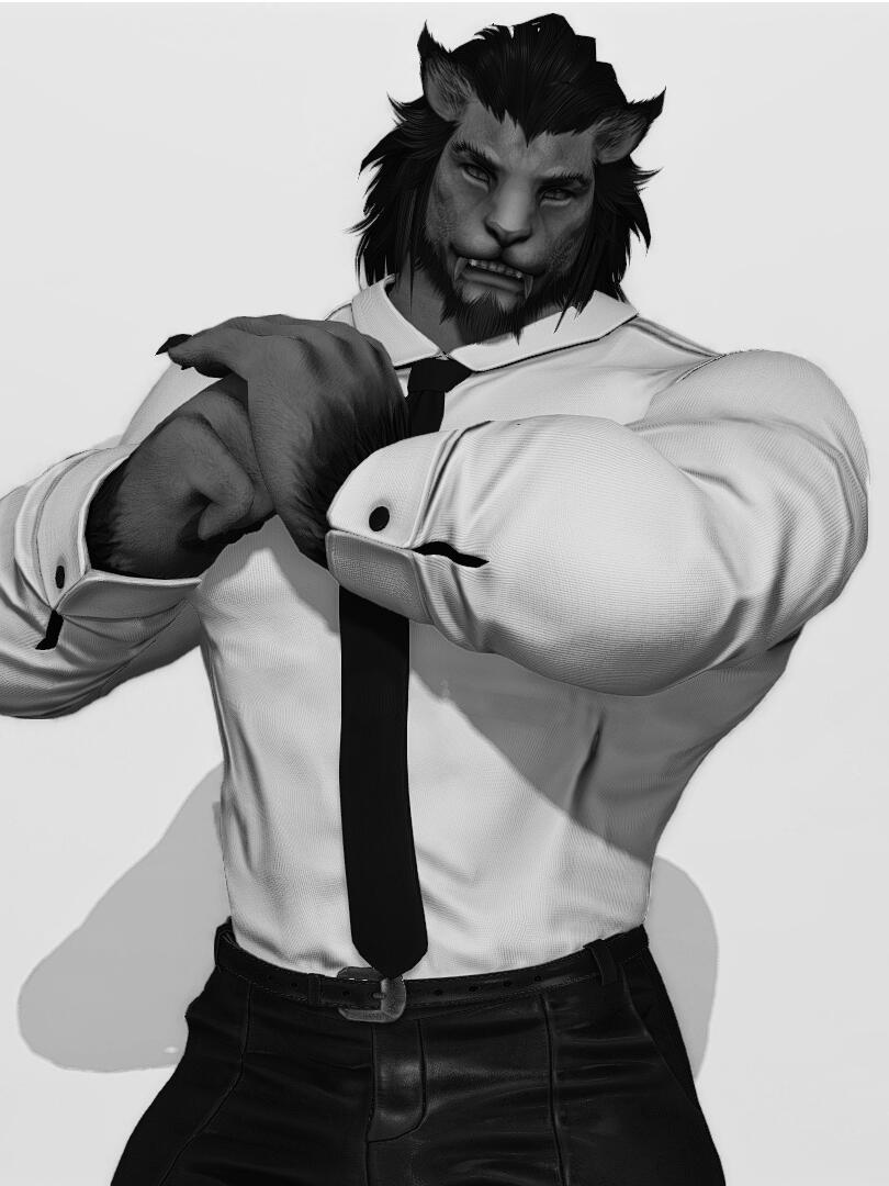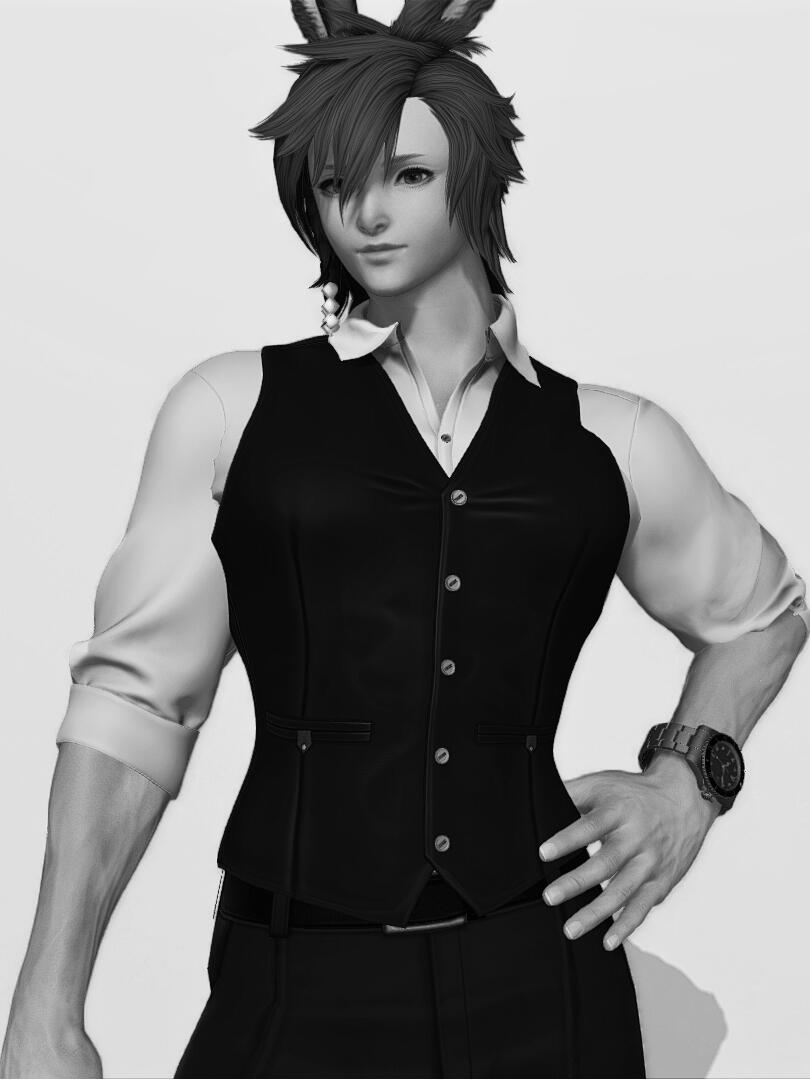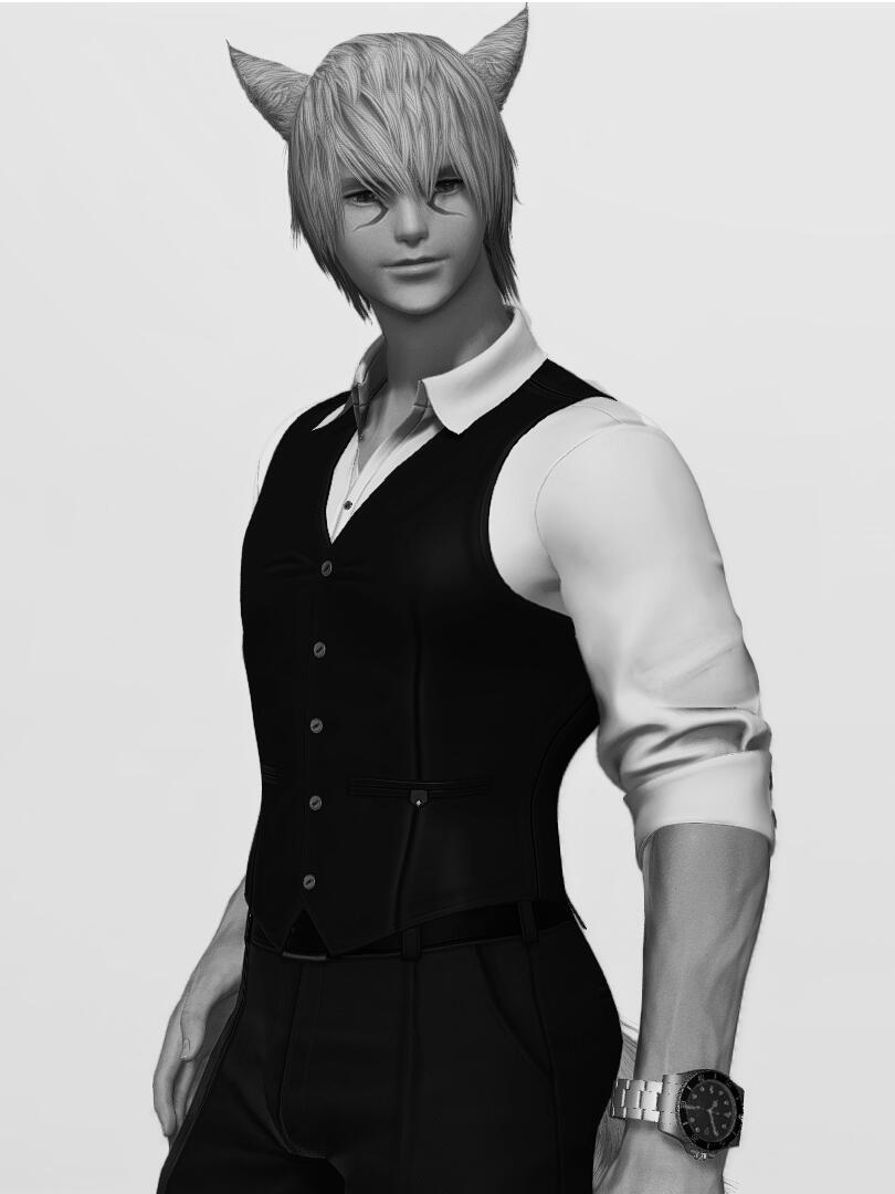 "Ever since waking up among the remains of a little village in Yanxia during the war, Varus has only known hunger; One that he could never satisfy. A hunger that drove him into a rampage, killing Garleans and innocents alike until he was finally stopped by a man, who later became his mentor. Under his tutelage, Varus picked up the way of the sword and learnt to suppress his unusual condition. He was then left in New Gridania during one of their travels, entrusted to another guardian unknowingly while his mentor disappeared.Annoyed by the huge expenses on Varus' big appetite, his guardian pestered him to earn his own keep by looking for more jobs; Which is how he ended up working here at the House of Versace. Varus' predatory instinct still remains, and one should tread carefully around him. Though having any sort of food (Especially sashimi) to please his hunger proves to be effective in making him rather compliant. Disclaimer: Does not always work."