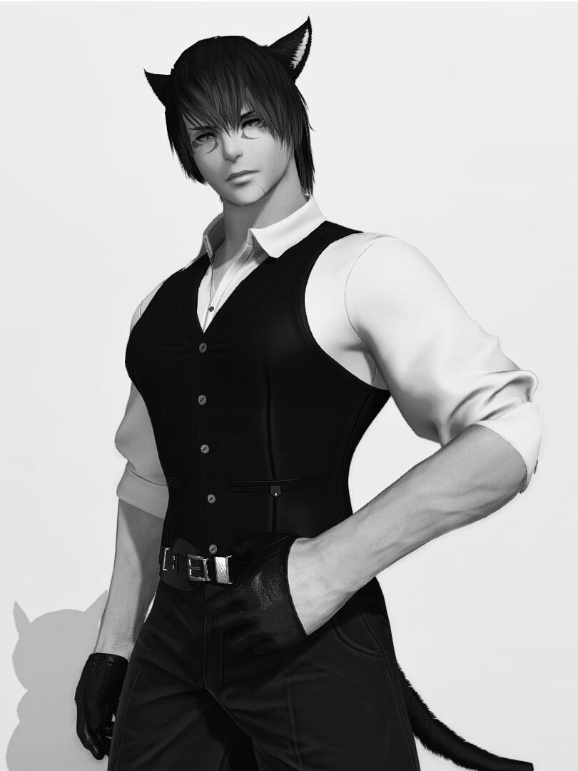 A Miqo'te that seeks spice in everything he encounters, he'll stop at nothing to get his fill of shiny objects to keep - may it be glamours, glowy weapons, or you. He can get quite excited about things that grab his eye, and if something or someone even slightly intrigues him, he will act on it and pounce. If he sets his sights on you, expect him to give you his undivided attention. Just be prepared to take responsibility and keep him entertained